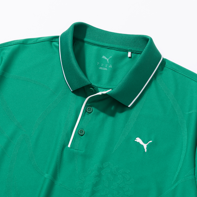 PUMA 30904エンボス柄半袖ポロ グリーン