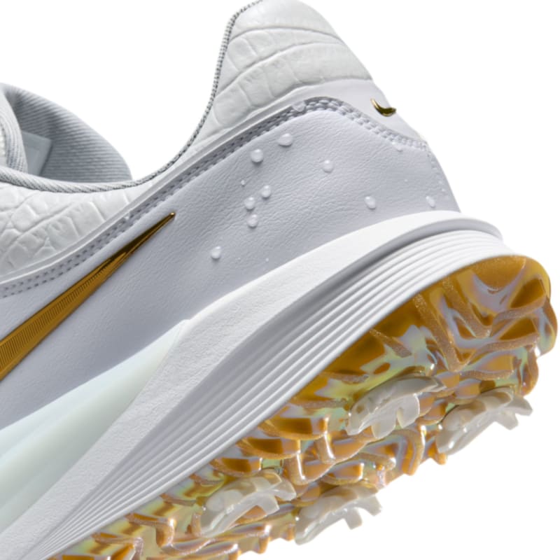 シューズのアッパーに、17番で池ポチャした際のスプラッシュをイメージした立体の水滴模様という、なんとも凝ったデザイン。