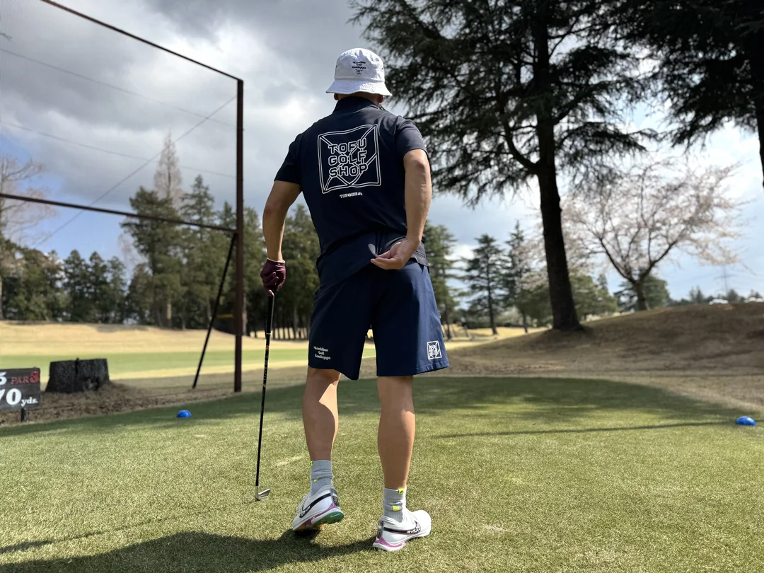 TANGRAM×Kuchibue Golf Gentleman the “HUT” edition TOFU GOLF SHOP ロゴショーツ ネイビー【GO/LOOK!限定販売】